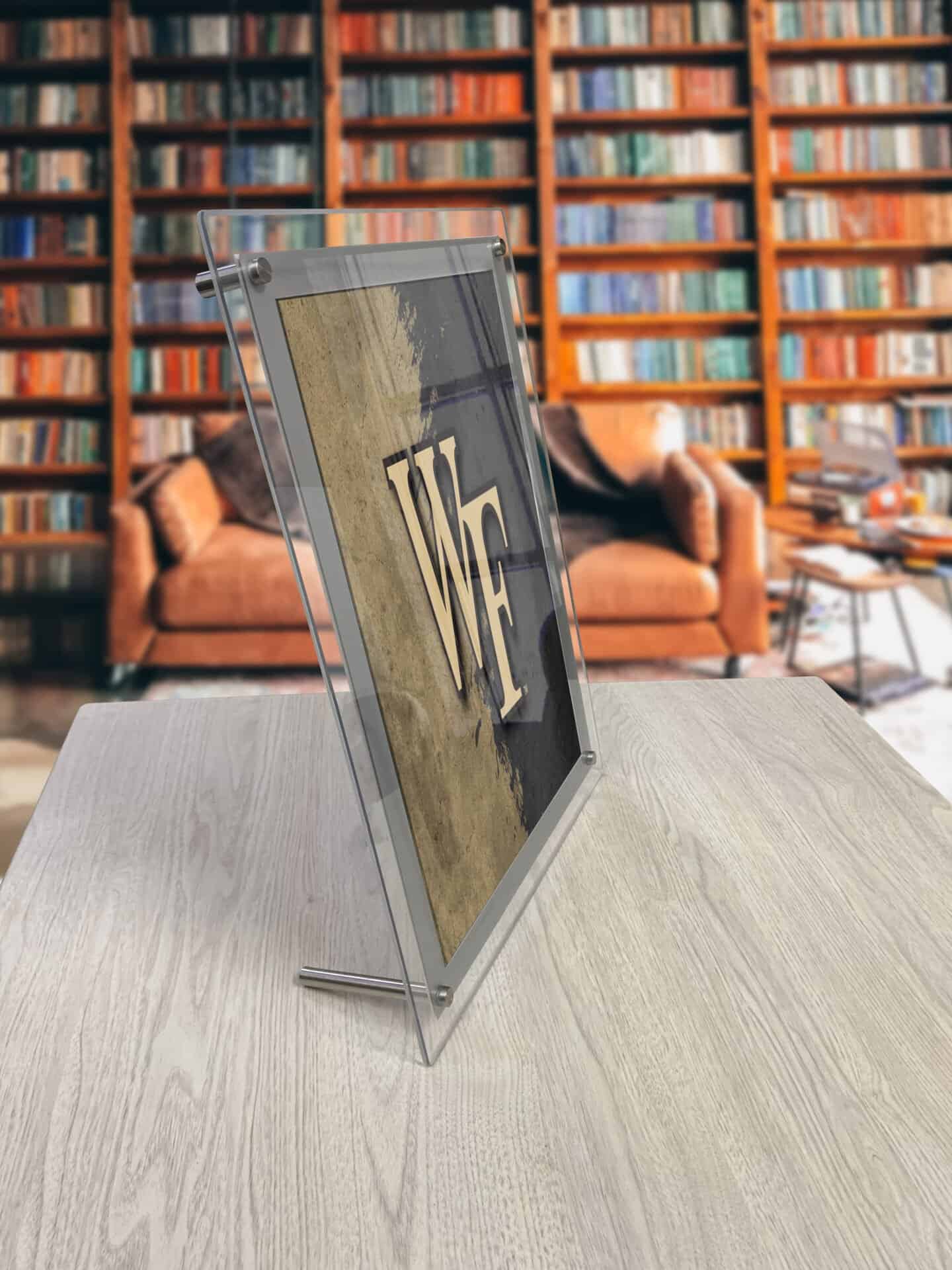 - Mounting: Includes hardware for wall mounting (1″ Stand-offs) or desktop display (3 3/4″ foot).