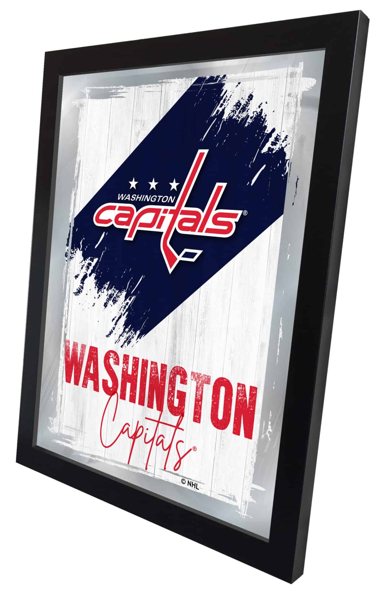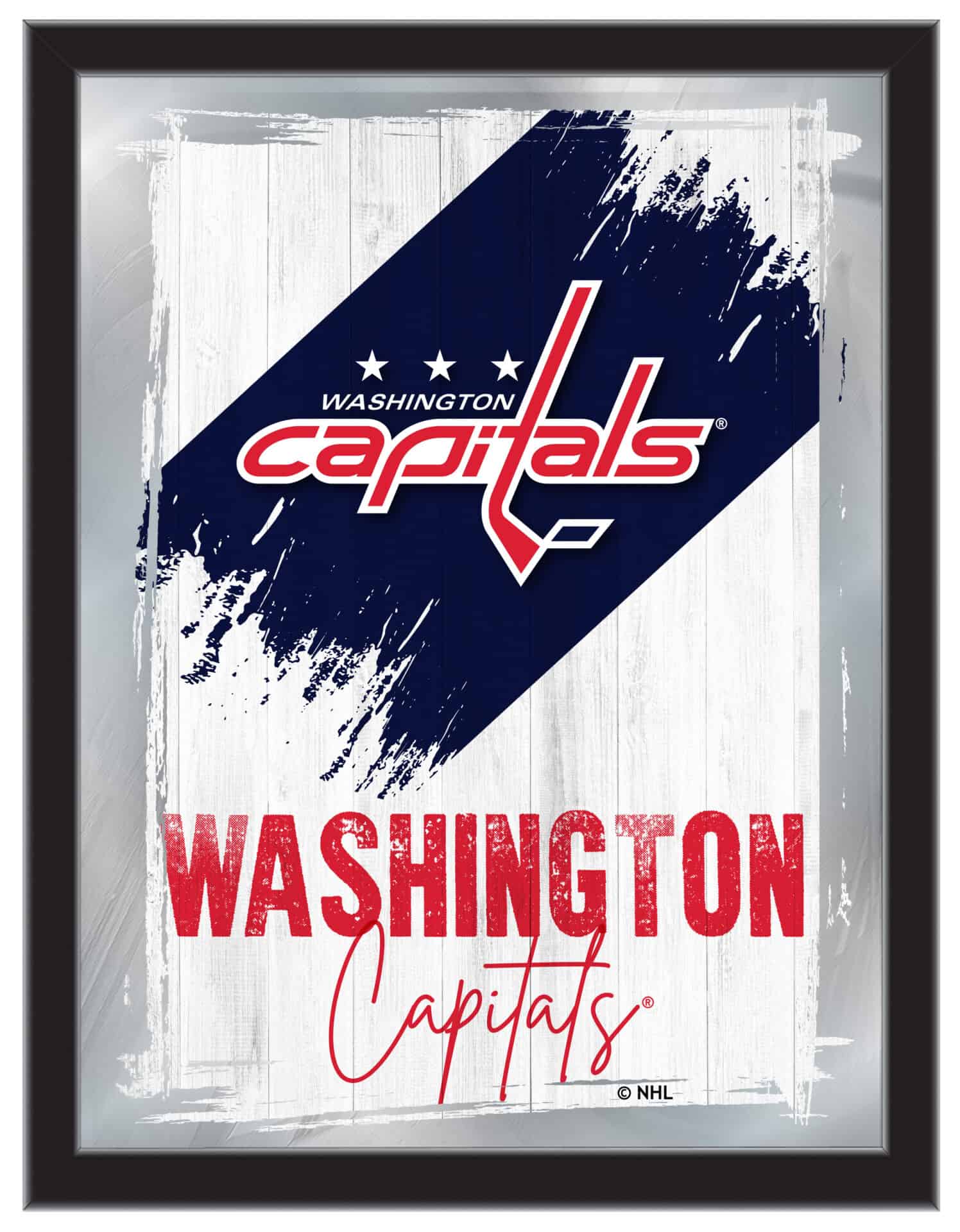 Show your team pride with this Official Licensed NHL Logo Mirror. With its simple yet elegant design, vibrant colors burst through the 1/8″ thick glass and are beautifully highlighted by the mirrored accents. Framed with a sleek black 1 1/4″ wrapped wood frame and equipped with saw-tooth hangers, this 17″ (W) x 22″ (H) mirror is perfect for your office, garage, or any room in your home. Whether you’re purchasing as a gift for a superfan or for yourself, this mirror is a stylish addition to any space.