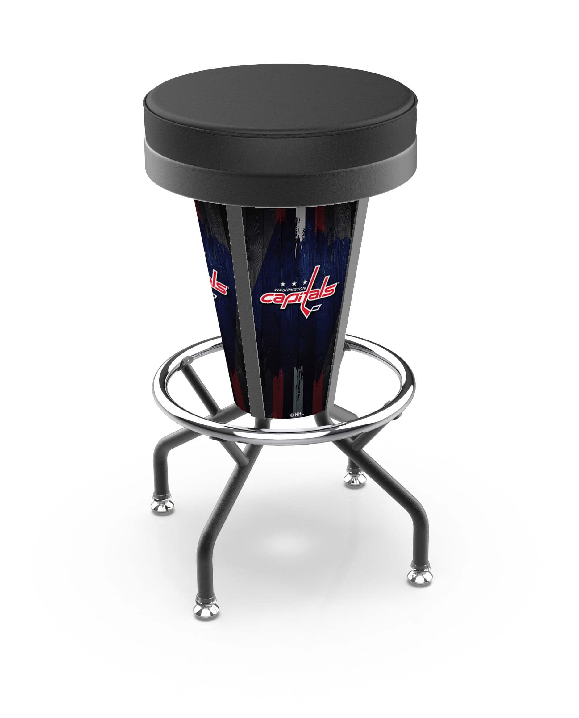 Elevate your fan cave with the officially licensed Washington Capitals 30-Inch Lighted Bar Stool. This stool combines comfort, durability, and team pride, making it the perfect addition to your home bar, game room, or patio. Featuring a robust steel frame, a comfortable marine-grade vinyl seat, and vibrant, interchangeable graphic panels illuminated by a rechargeable LED light, this stool is sure to impress. Enjoy smooth swivel action and customizable lighting to create the ultimate game-day atmosphere.