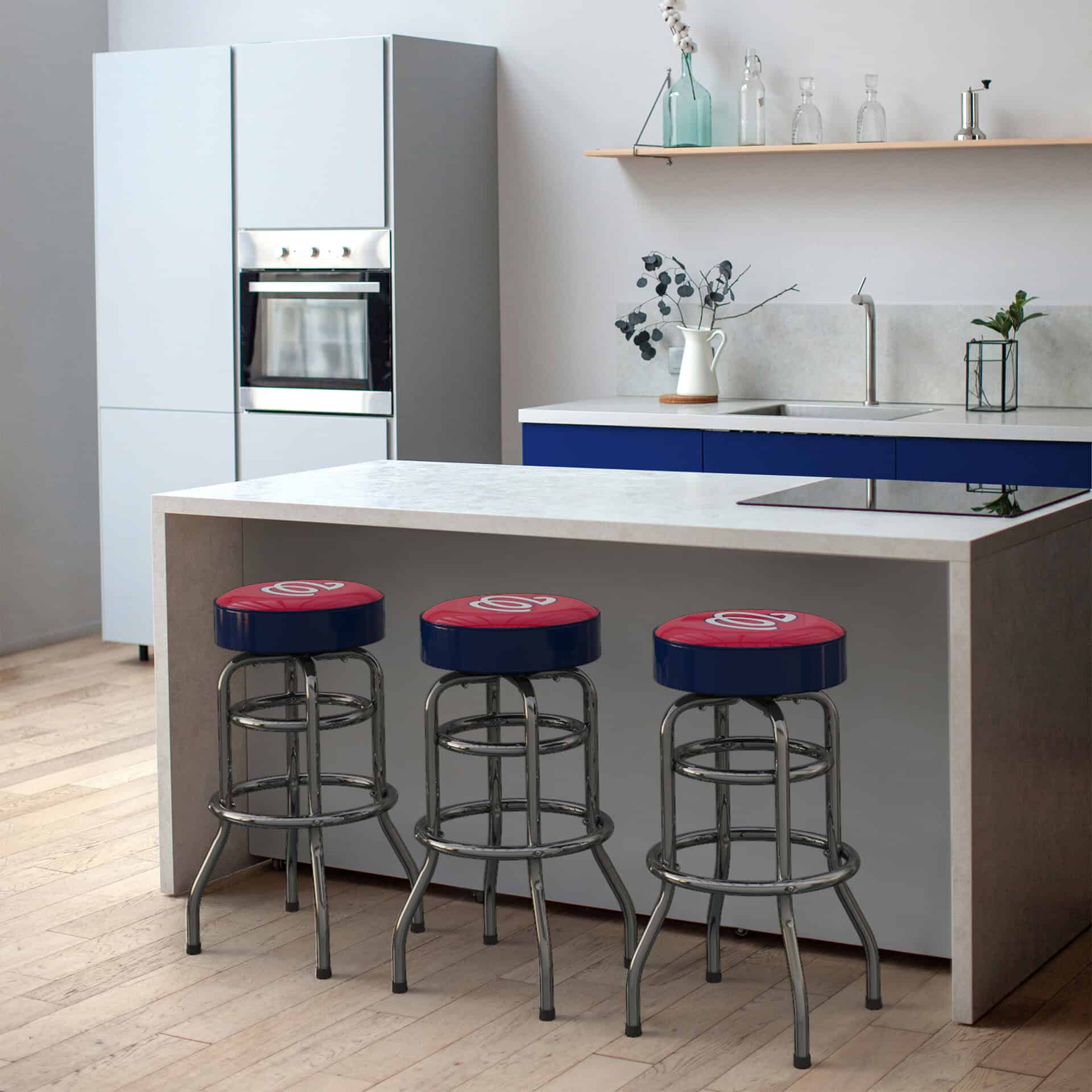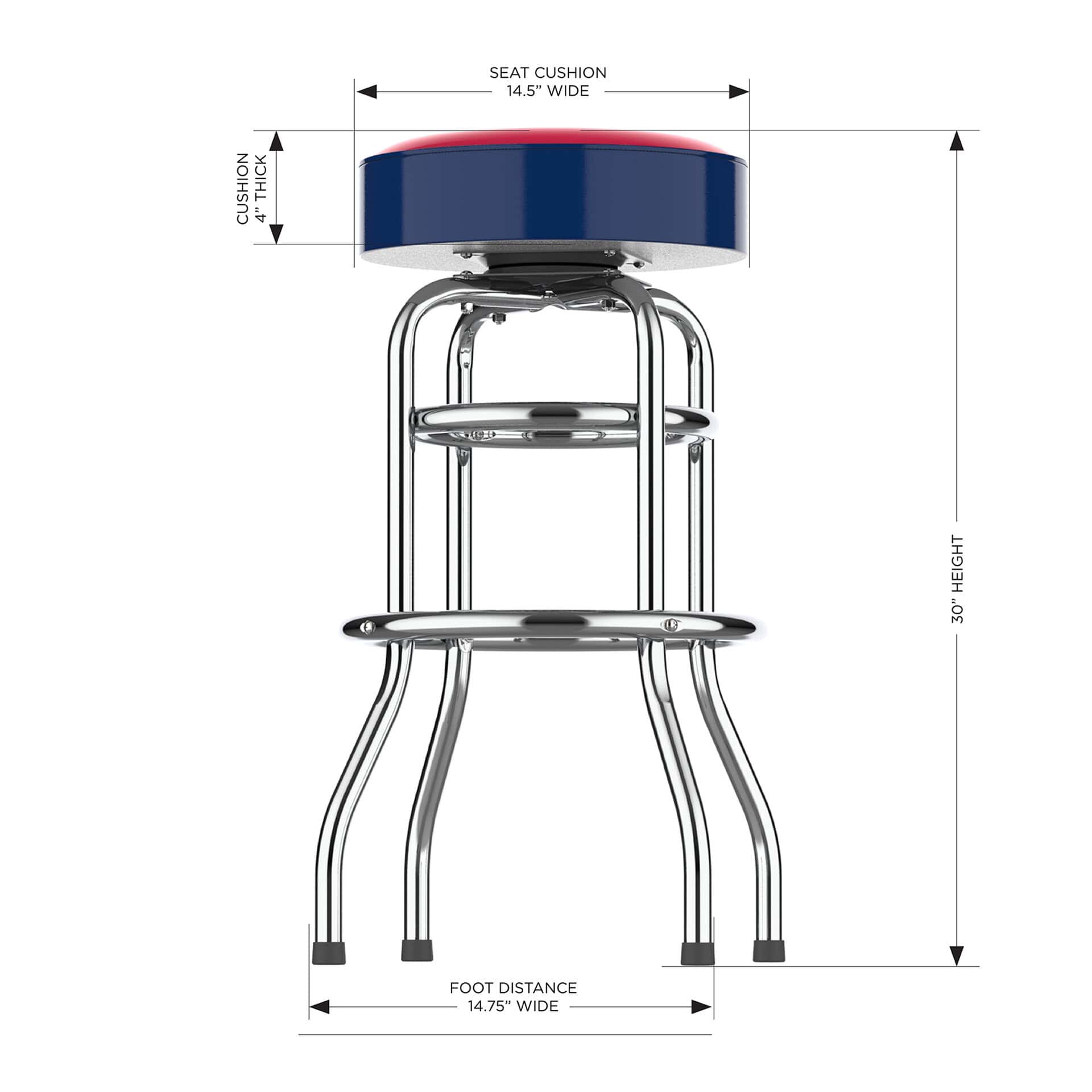 This bar stool combines durability with team pride, making it a perfect addition to any fan cave or bar area. Show off your team spirit with this sturdy, American-made bar stool featuring vibrant team colors and a scratch-resistant logo. Enjoy comfortable seating and long-lasting quality while displaying your unwavering support.