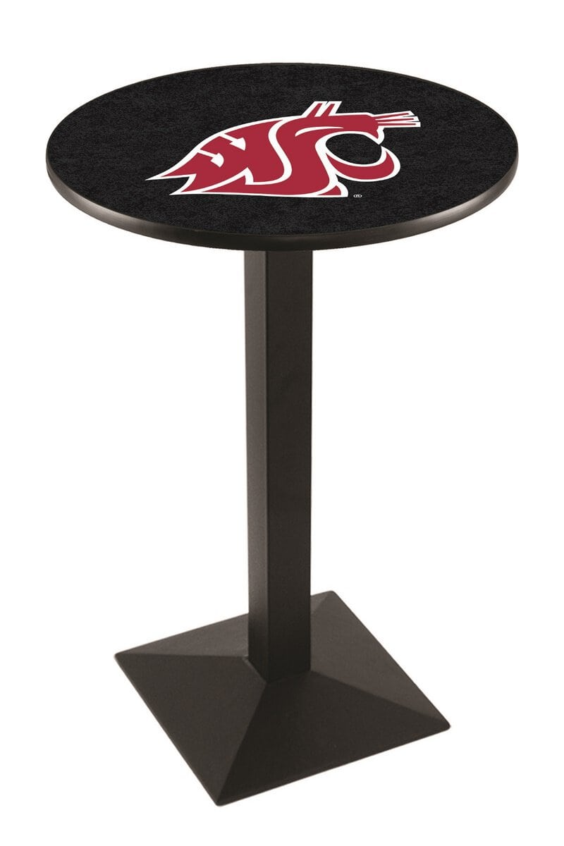 Enhance your bar, game room, or man cave with this high-quality 36-inch pub table. Designed with a sleek black wrinkle finish and a durable square base, this table combines style and functionality. Its sublimated, full-color, scratch-resistant laminate top ensures lasting vibrancy while being easy to clean. The sturdy commercial-grade base ensures exceptional stability, while adjustable feet accommodate uneven floors. Perfect for entertaining guests or showcasing your team spirit, this pub table is built to impress.