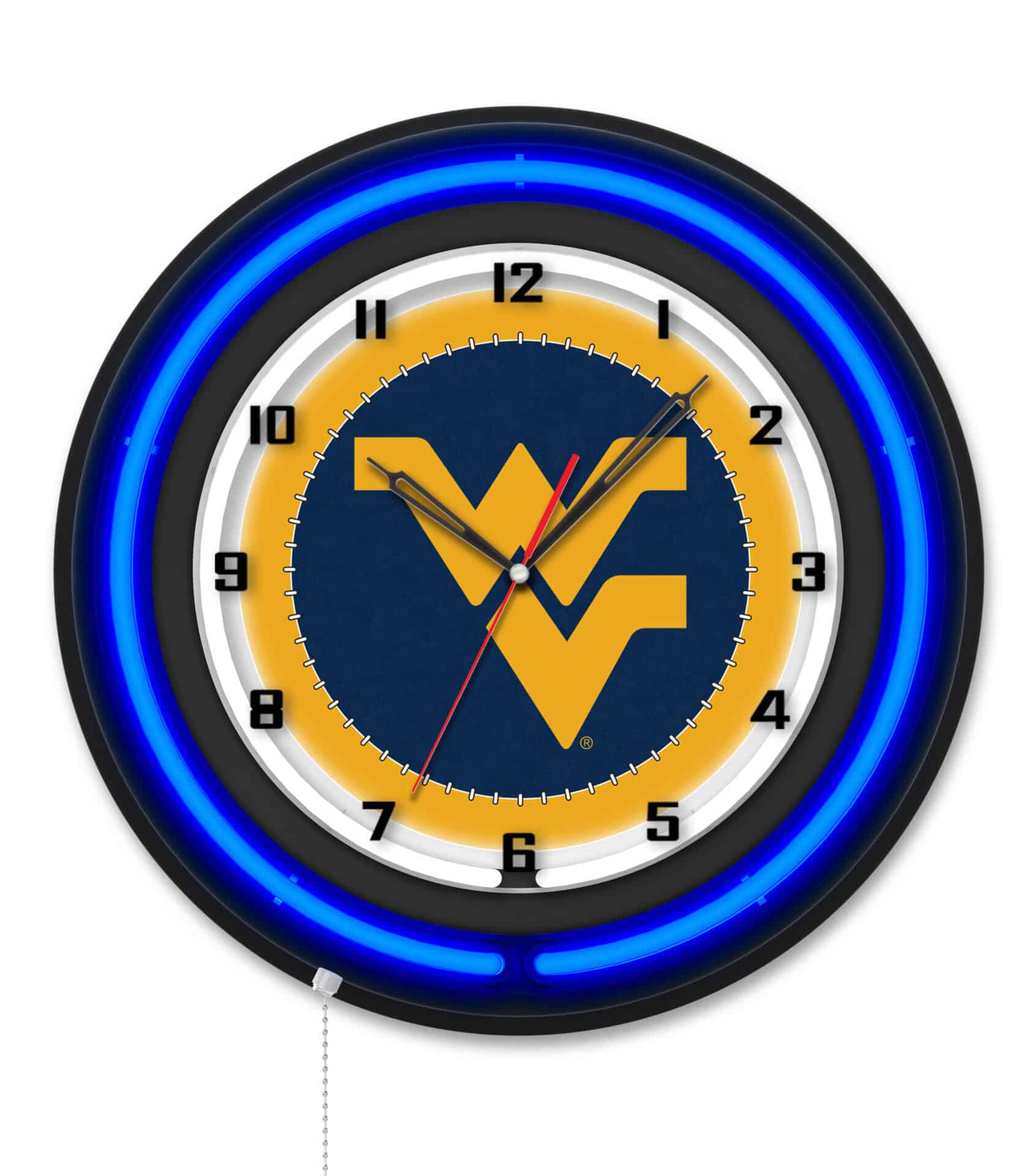 The West Virginia University 19-Inch Neon Logo Clock in Black is the perfect addition to any fan’s man cave, showcasing your school pride in style. This clock features a sleek black casing complemented by a vibrant team color neon outer ring, which beautifully accents the custom printed clock face. The brilliant white inner neon ring illuminates the clock, making it a striking focal point in any room. With easy on/off functionality via a pull chain and accurate quartz movement powered by a single AA battery, this clock combines functionality with a bold design. Ideal for gifting to recent graduates or sports enthusiasts, this clock not only tells time but also serves as a testament to your loyalty and pride.
