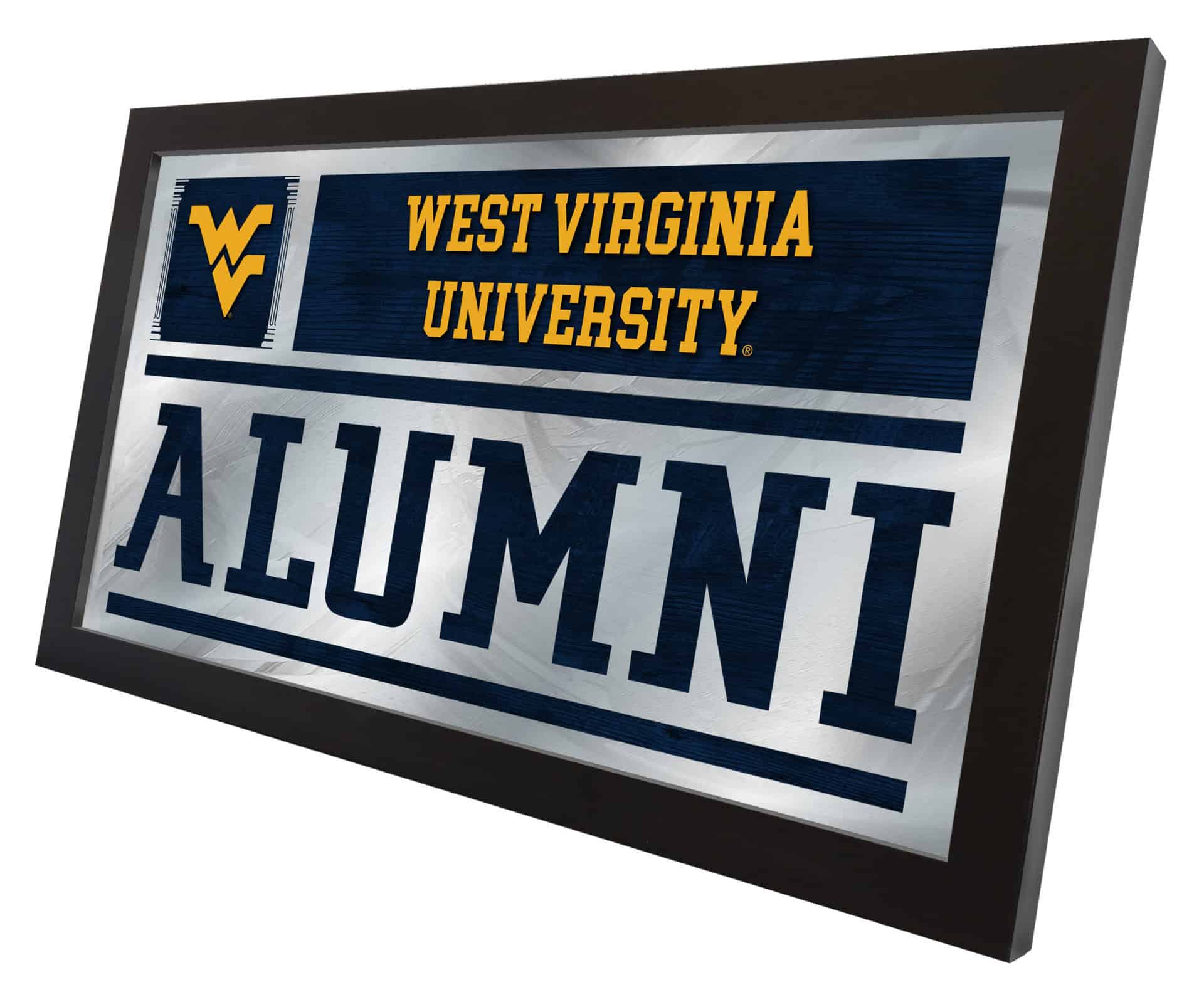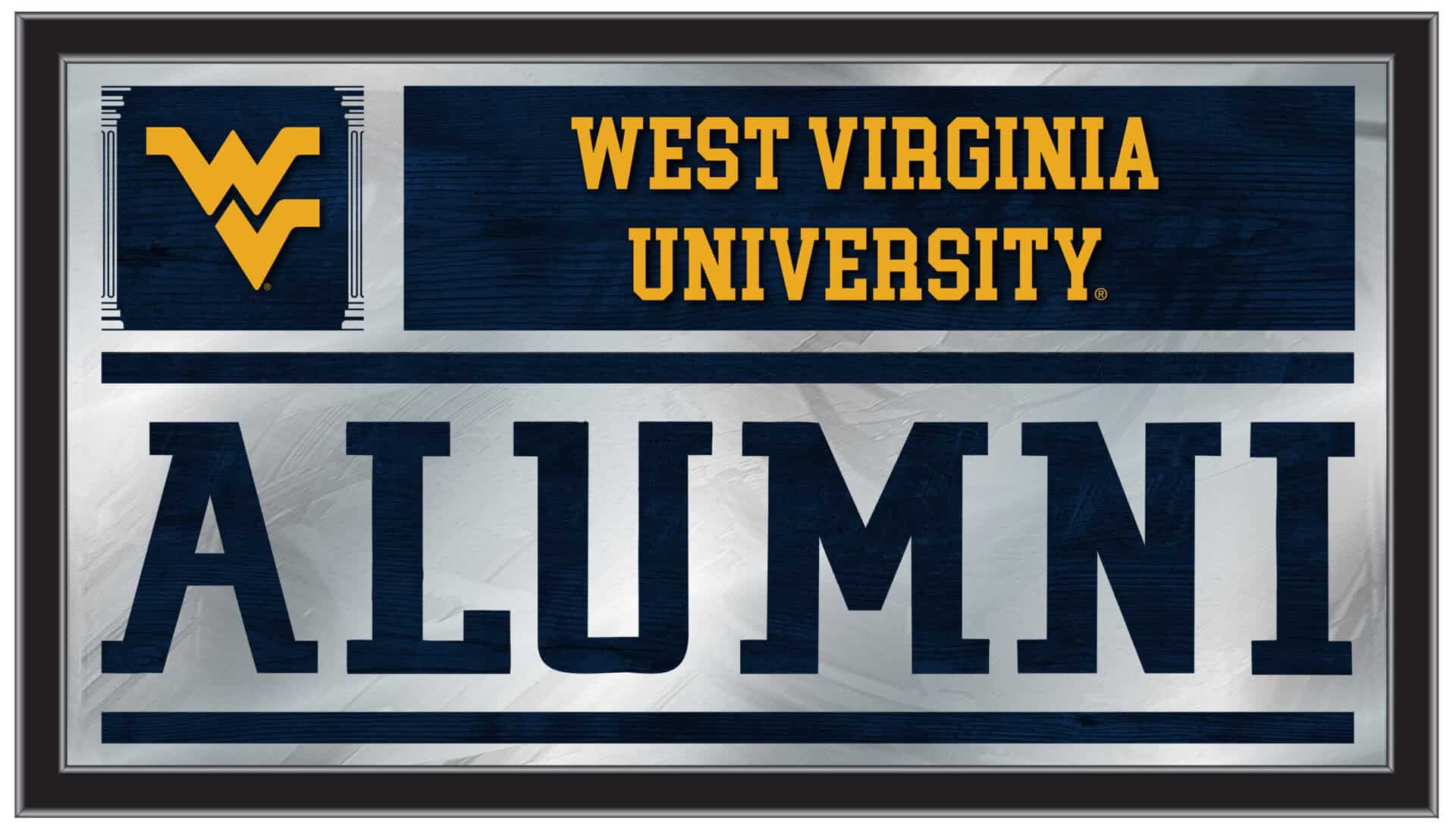Show your school pride with the Alumni wall mirror that features a simple yet elegant design. Your school colors burst through the 1/8″ thick glass and are beautifully highlighted by mirrored accents. This mirror is framed with a black, 1 1/4″ wrapped wood frame and includes saw tooth hangers for easy installation. Measuring 26″ (H) x 15″ (W), it is perfect for your office, garage, or any room in your home. Whether you’re purchasing it as a gift for a recent graduate or for yourself, you can take satisfaction in knowing you are buying a mirror that is proudly made in the USA.