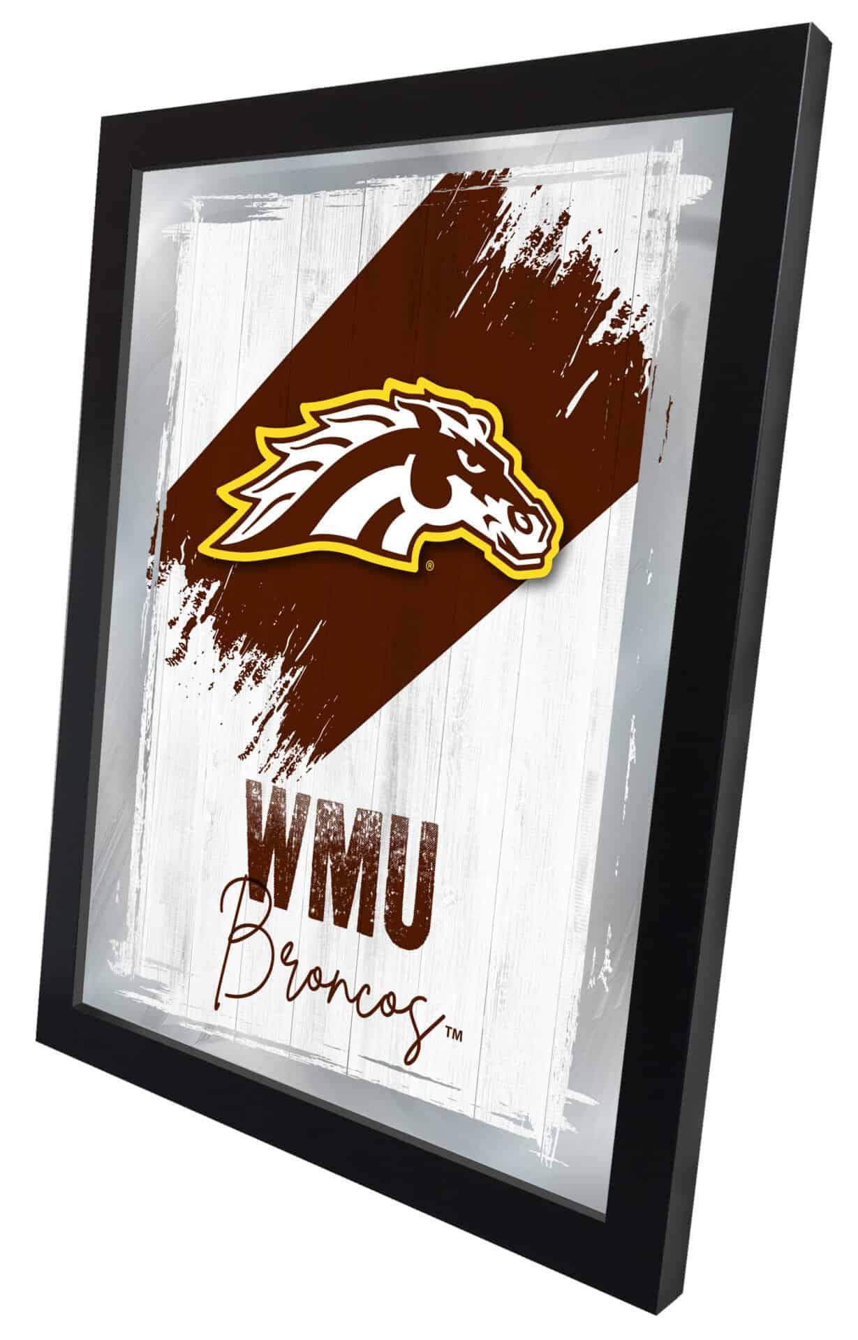 Show your school pride with this Official Licensed Logo Mirror. With its simple yet elegant design, vibrant colors burst through the 1/8″ thick glass, enhanced by mirrored accents. The mirror is framed with a sleek, black, 1 1/4″ wrapped wood frame and features saw tooth hangers for easy mounting. Measuring 17″(W) x 22″(H), this mirror is perfect for your office, garage, or any room in your home. Whether you’re buying for yourself, a recent graduate, or a dedicated sports fan, you can feel confident in your purchase of this high-quality mirror.
