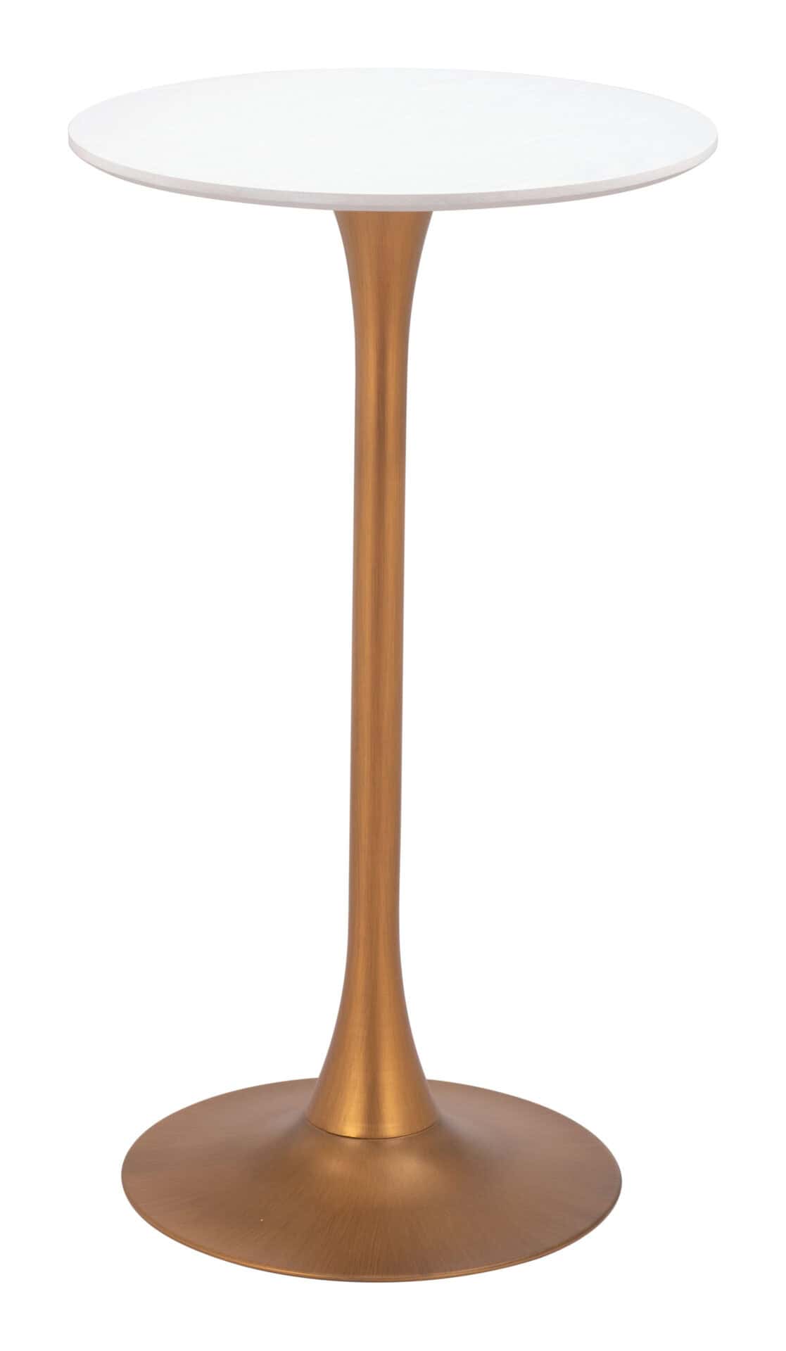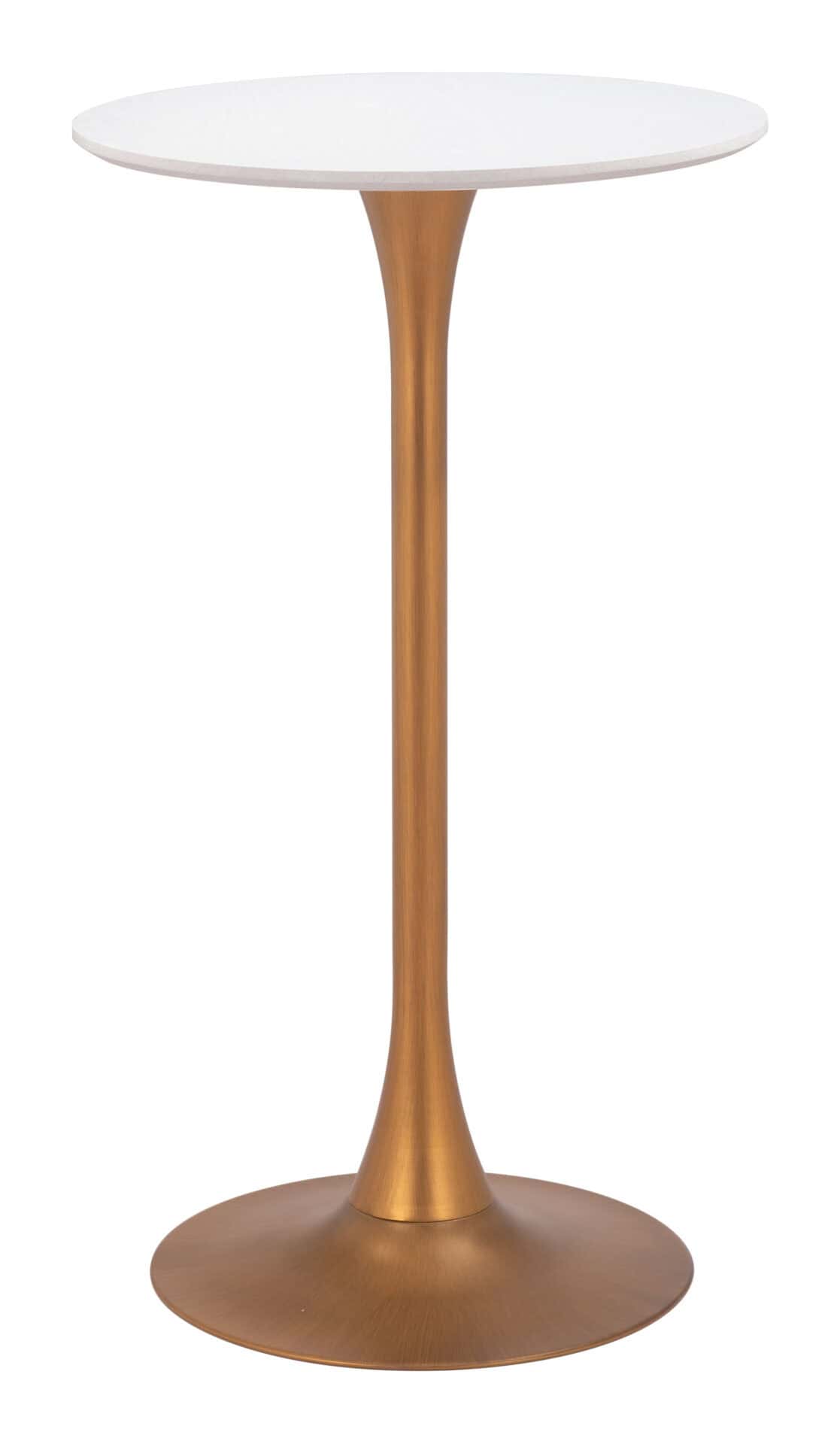 The White and Gold Bar Table with Round Top and Pedestal Base is a chic and functional addition to any space, including your man cave, kitchen, or bar area. This modern table is designed with an industrial flair, featuring a round top that appears to float elegantly on a pedestal base. Its sleek white and gold finish enhances the visual appeal, making this a versatile piece that complements various styles of décor. The sturdy construction ensures lasting durability, while its compact design makes it perfect for smaller spaces.
