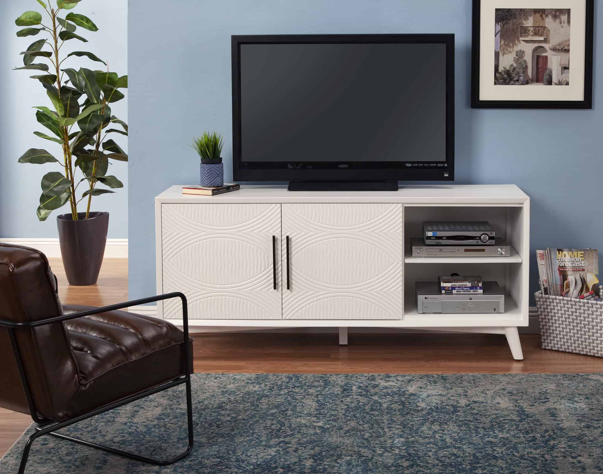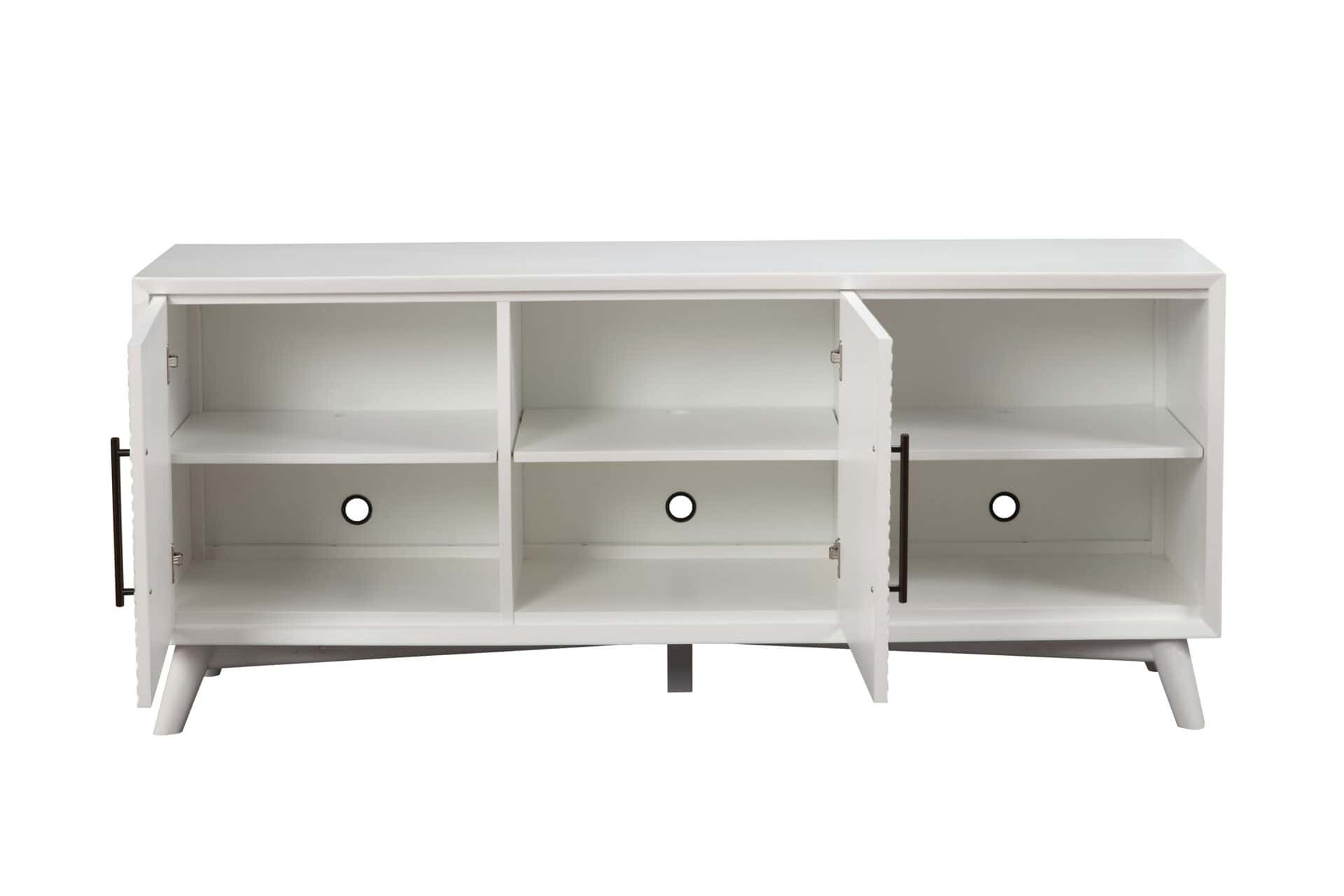 The White Mahogany TV Console with Adjustable Shelves and Drawers is a perfect blend of classic design and modern functionality, making it an ideal addition to your man cave or living room. Crafted with Mahogany Solids & Veneer, this console offers a timeless aesthetic and durable construction. Featuring adjustable shelves and French & English Dovetail drawer construction, it ensures ample storage and a refined look. The felt-lined top drawer adds a touch of luxury, while the ball bearing metal drawer glides provide smooth operation. Fully assembled and designed for convenience, this piece is as practical as it is stylish.