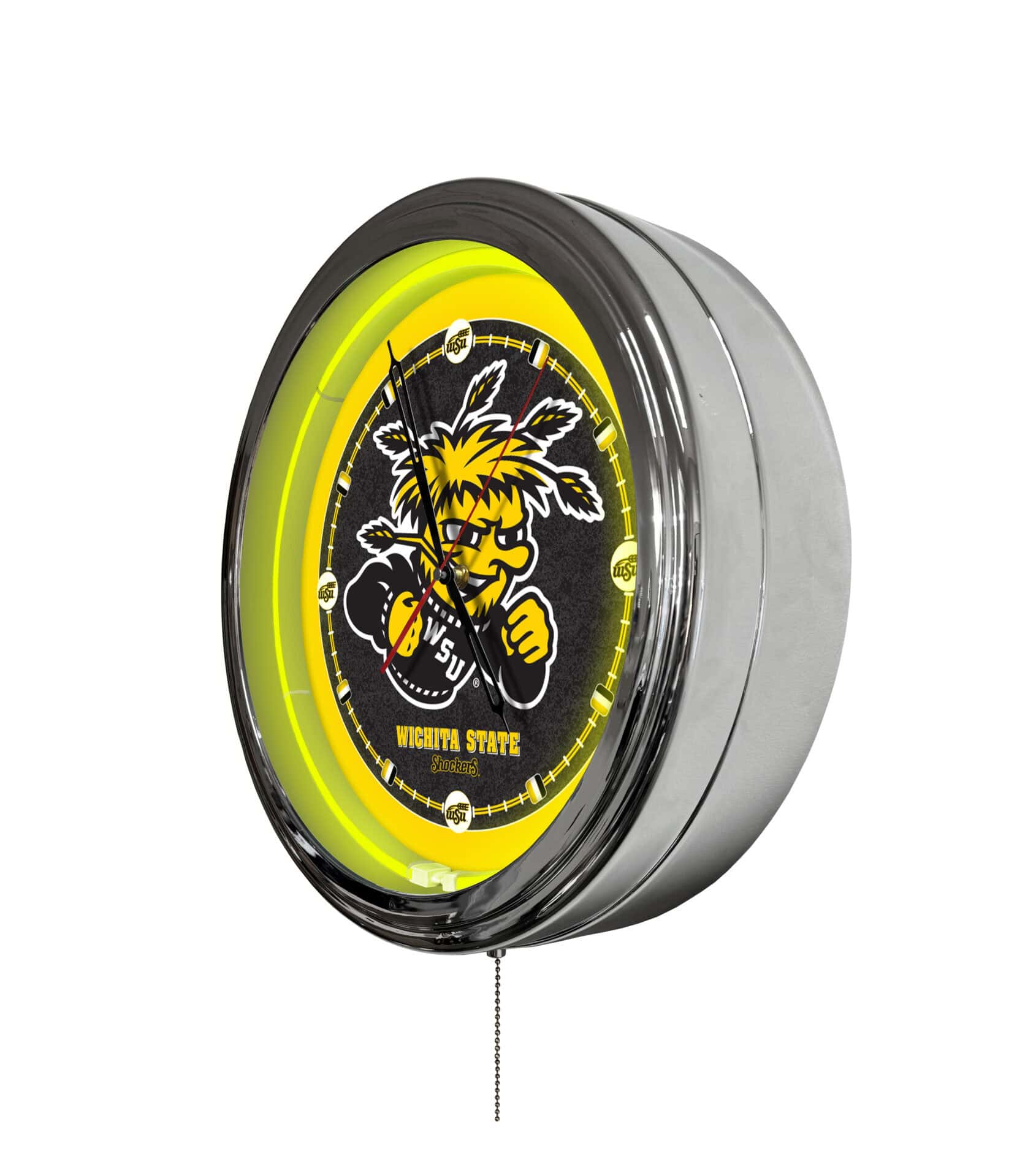 The Wichita State University 16-Inch LED Wall Clock in Chrome is a stylish and functional addition to any man cave or sports enthusiast’s room. This modern clock features a vibrant LED display that showcases your team’s logo in a variety of stunning colors, making it a perfect centerpiece for your decor. With 20 static colors and 19 dynamic modes, you can easily customize the ambiance to match any occasion or mood. The wireless remote allows for effortless control over color transitions, speed, and brightness, ensuring that your clock adapts seamlessly to any event.