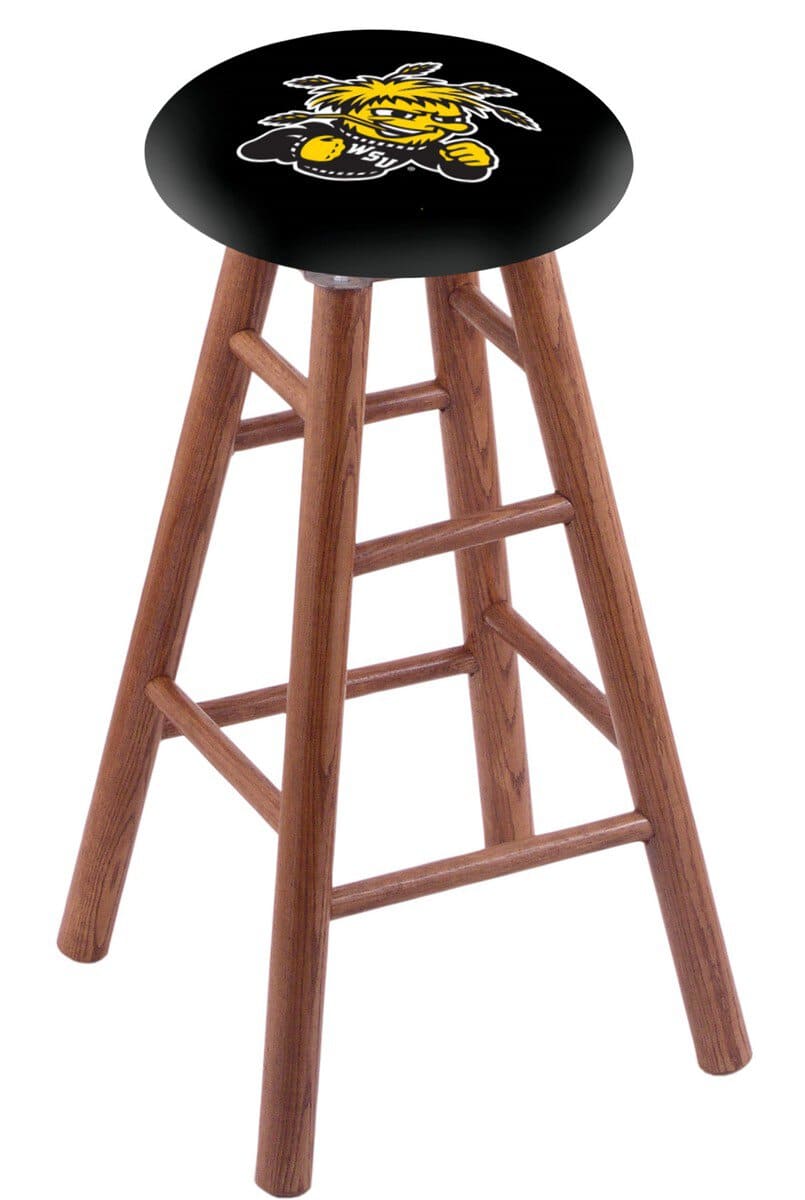 The Wichita State University 36″ Swivel Oak Extra Tall Bar Stool in Medium Finish is the perfect addition to any man cave, game room, or bar area. Designed for ultimate comfort and durability, this extra-tall stool combines superior craftsmanship with eye-catching design to showcase your school spirit. The stool features a durable, sharp, and crisp logo paired with a high-density foam cushion for maximum support. Its solid wood construction and premium finishing ensure long-lasting quality, making it an ideal choice for both residential and commercial use. With a 52-ball bearing swivel mechanism, it offers smooth rotation and eliminates wobbling for a reliable and enjoyable seating experience.