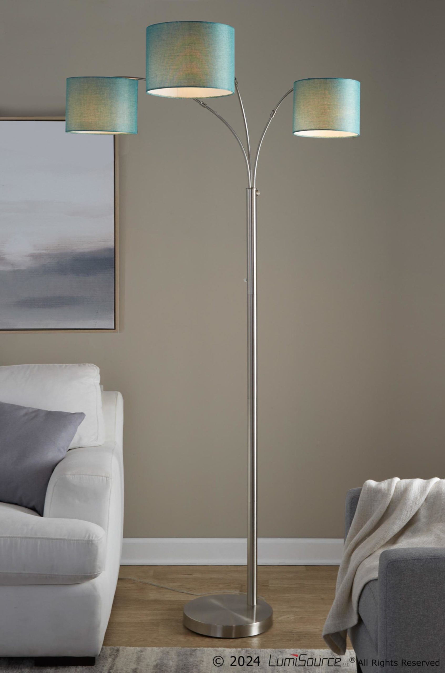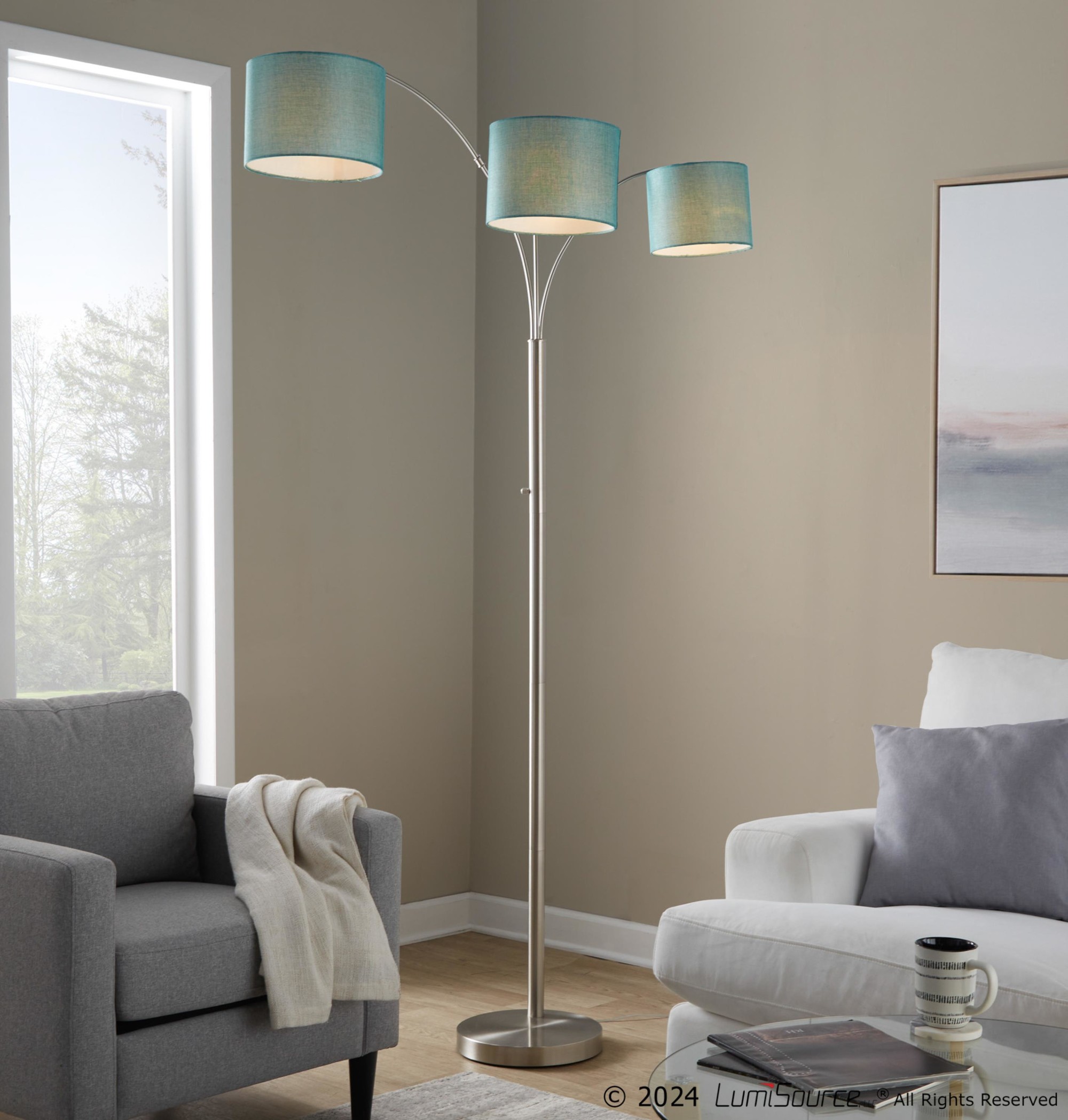 The Willow Floor Lamp adds an elegant touch to any room. Featuring a sleek brushed nickel base and three cascading turquoise linen shades, this lamp combines modern design with timeless charm. The varying sizes of the shades create a unique visual appeal, making it both a functional and fashionable addition to your home.