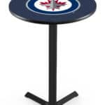 Elevate your bar, game room, or man cave with this high-quality 36-inch pub table. Designed for durability and style, this table features a vibrant, full-color, scratch-resistant laminate top and a sturdy cross base with a sleek black wrinkle finish. The commercial-grade construction ensures exceptional stability, while adjustable feet accommodate any floor surface. Easy to assemble and clean, this table is the perfect addition to any space where you want to showcase your loyalty in style.