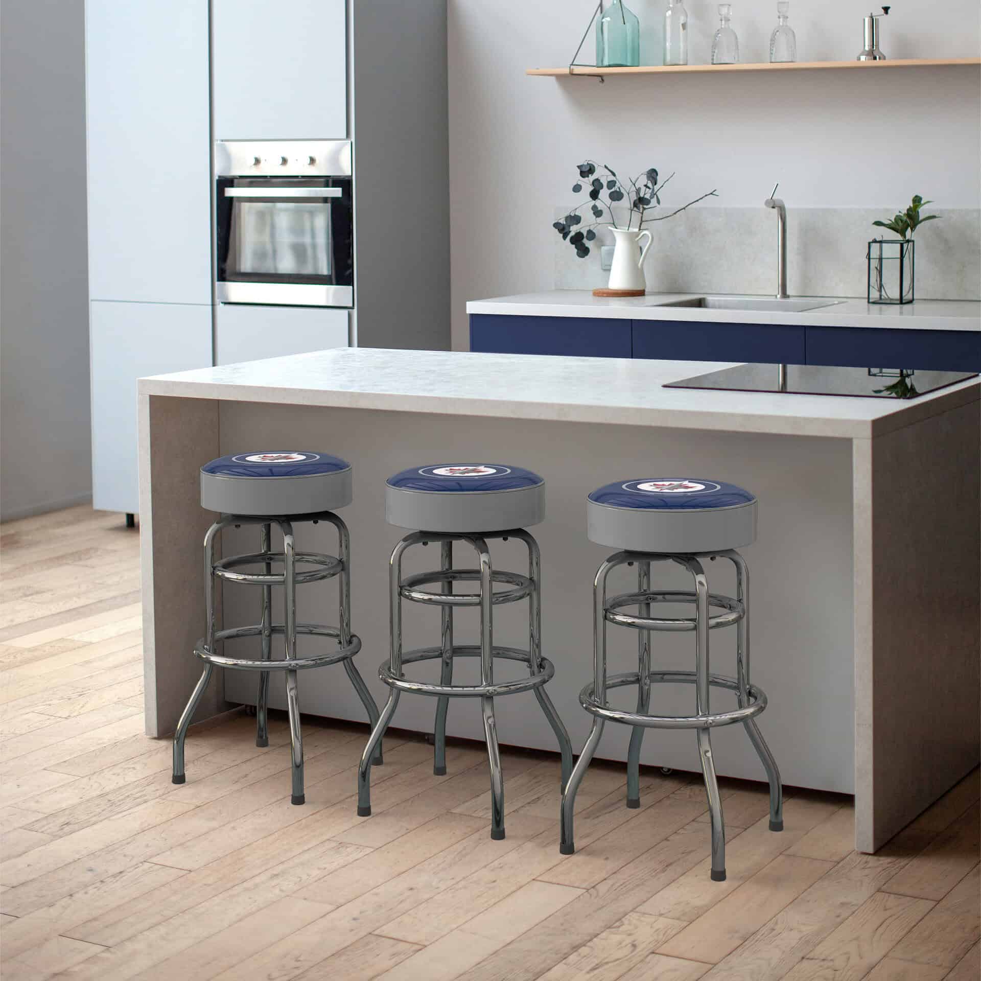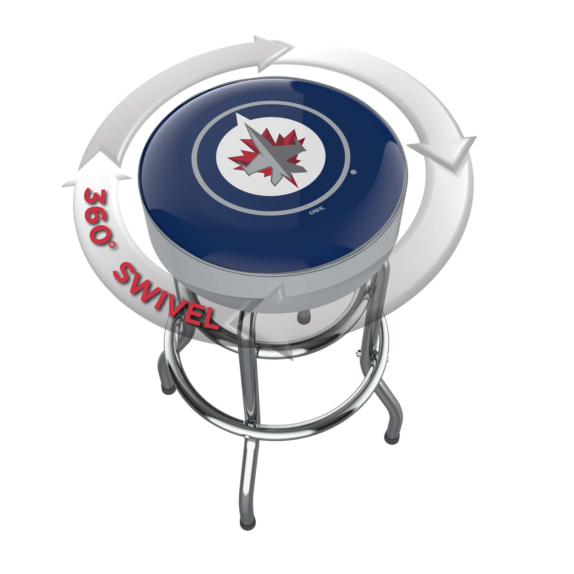 Enhance your fan cave or bar area with this durable and stylish bar stool. Featuring the Winnipeg Jets logo and colors, this stool combines comfort and team pride. Its robust construction ensures it will be a favorite spot for years to come.