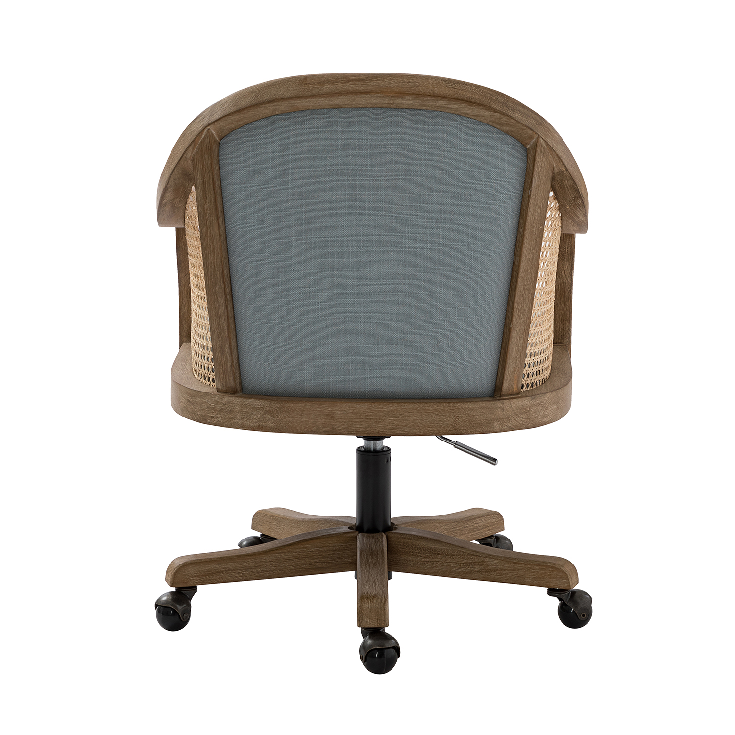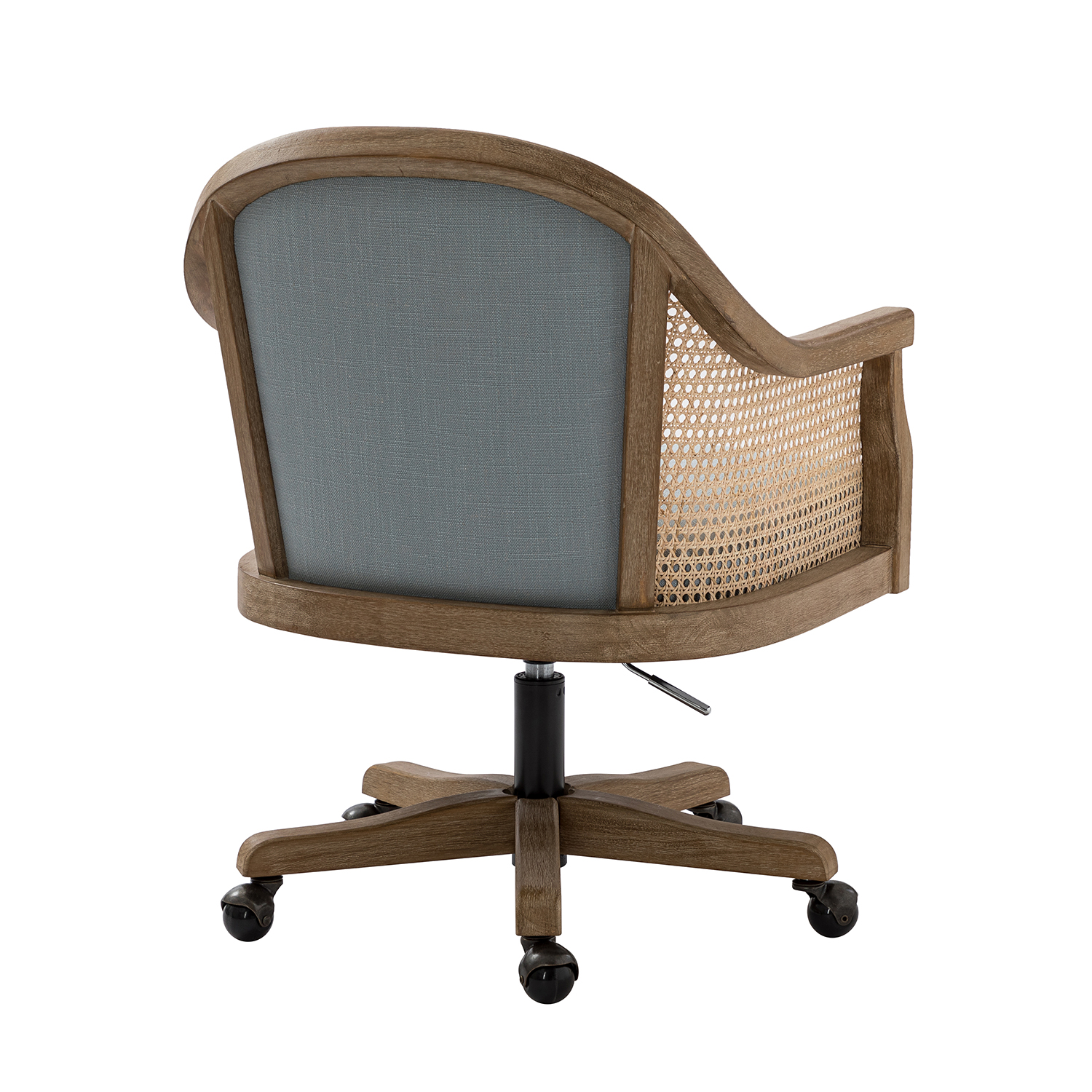 Enjoy the benefits of its airy caned barrel back for exceptional support, while the swivel base and smooth-rolling casters allow for effortless movement. Adjust the height to your preference and experience the comfort of the three-degree curved seat designed to fit the natural curves of your body.