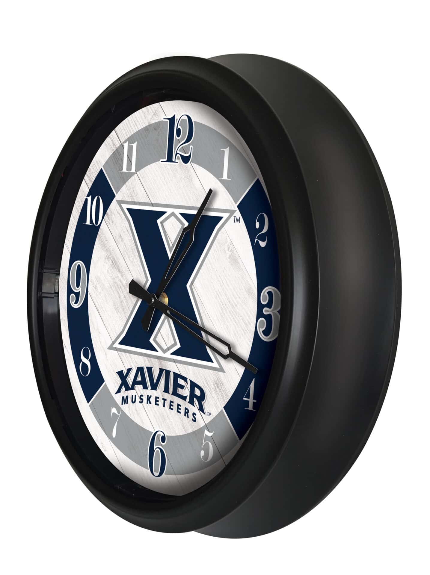 The Xavier 14-Inch Indoor/Outdoor LED Wall Clock in Black is the ideal timepiece to enhance your space, whether indoors or outdoors. With its robust construction and vibrant artwork, this clock not only tells time but also showcases your style and pride. It features a weather-resistant design with a UV-resistant black ABS plastic casing and a sealed glass face lens, ensuring durability against the elements. The clock is equipped with photo eye controlled LED lights that illuminate the clock face automatically in low light conditions, providing visibility day or night.