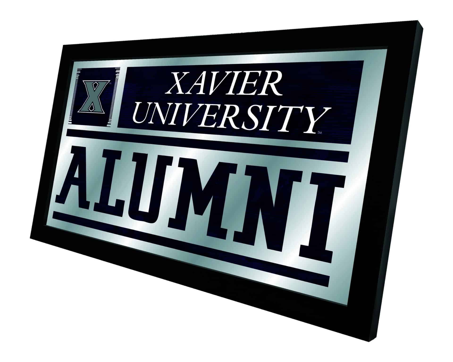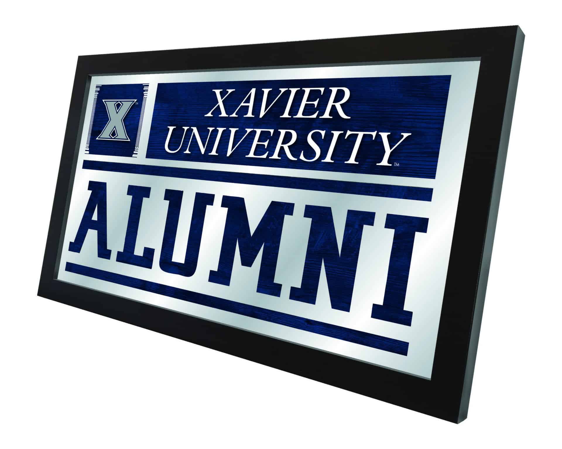 Show your school pride with the Xavier 26×15 Alumni Wall Mirror. With its simple yet elegant design, this mirror showcases your school colors through the 1/8″ thick glass, beautifully complemented by mirrored accents. The mirror is framed with a black 1 1/4″ wrapped wood frame and features saw tooth hangers for easy installation. Measuring 26 inches high by 15 inches wide, it’s perfect for your office, garage, or any room in your home. This mirror makes an excellent gift for recent graduates or a stylish addition to your own decor, providing a sense of accomplishment and pride.