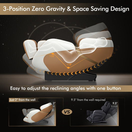 - Zero Gravity and Space-saving Design: One-button zero-gravity recline with 3 levels reduces spine and heart pressure. Space-saving technology requires only 2 inches from the wall.
