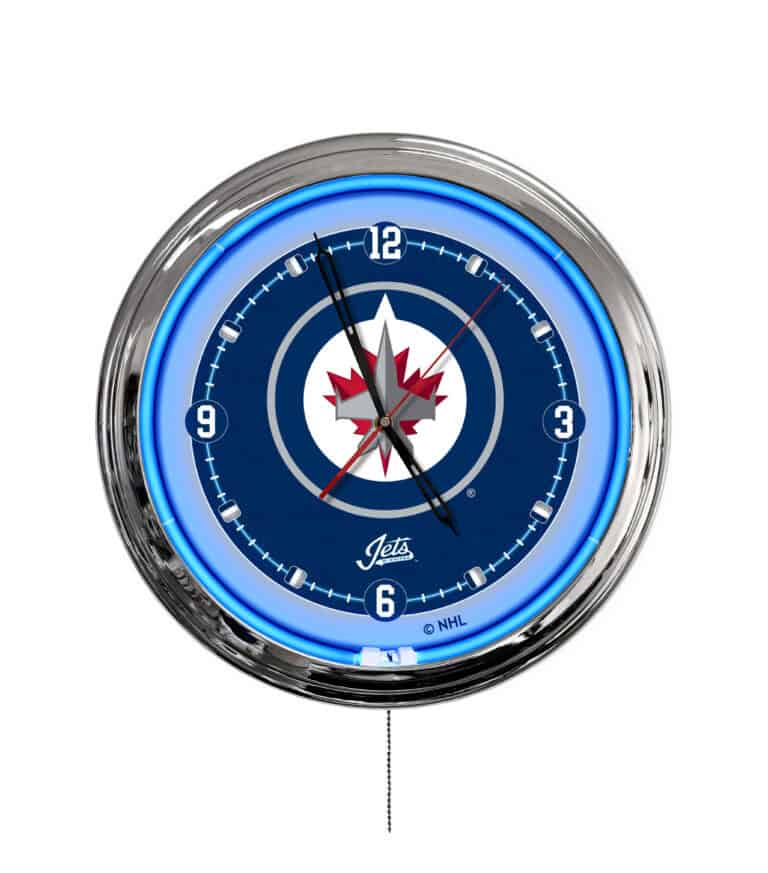 Cave Man Review: “Me like shiny clock! Tell time and make cave look cool!” Add a touch of sporty elegance to your man cave with this Washington Capitals 16″ LED Wall Clock in Chrome. This multi-color LED clock features 20…