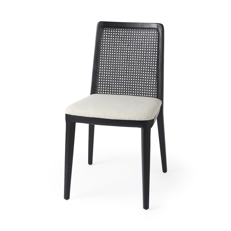 Clara Black Wood W/ Cream Fabric Seat and Cane Back Dining Chair