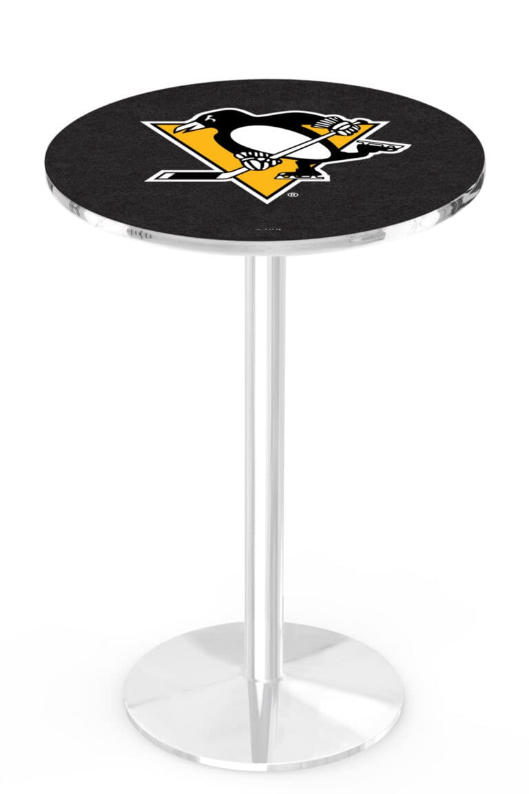 Pittsburgh Penguins 36-Inch Pub Table with 36-Inch Top, Square Base Base, and Chrome Finish