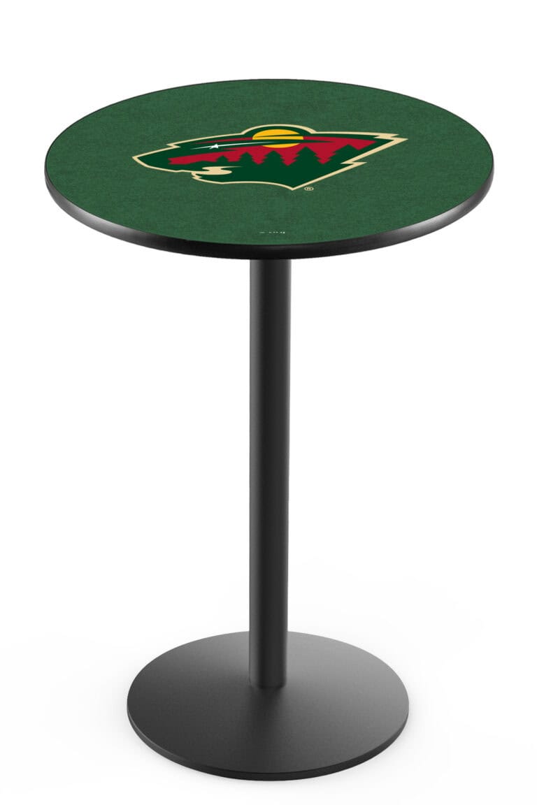Chicago Blackhawks 36-Inch Pub Table with 36-Inch Top, Square Base Base, and Chrome Finish
