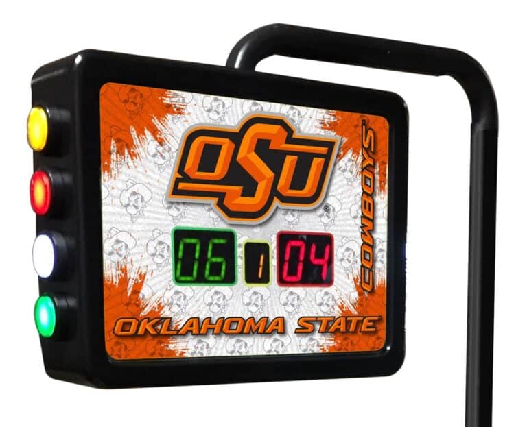 Cave Man Review: “Thorak see light! Light have horsey thing with orange and black stripes! Make big rock game room look good!” Show off your team pride with the Oklahoma State University Long Box Billiard Light. This suspended light fixture…