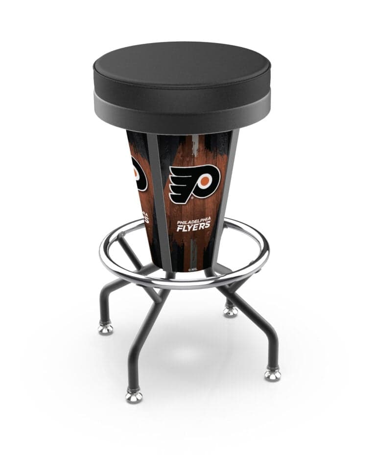 Cave Man Review: “Ugh! Shiny metal leg stool good! Not fall over when Thorak eat mammoth leg. Soft round place for butt. Team picture make cave look fancy! Thorak recommend!” Show your team spirit with this Philadelphia Flyers chrome bar…