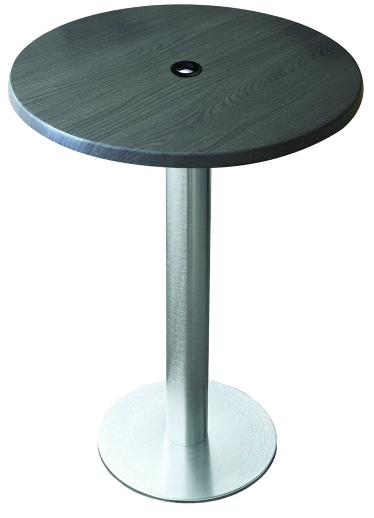 42-Inch Tall Indoor/Outdoor Table with 36 x 36-Inch Diameter Charcoal Square Top with Umbrella Hole, Brushed Aluminum Base, and 18-Inch Diameter Foot