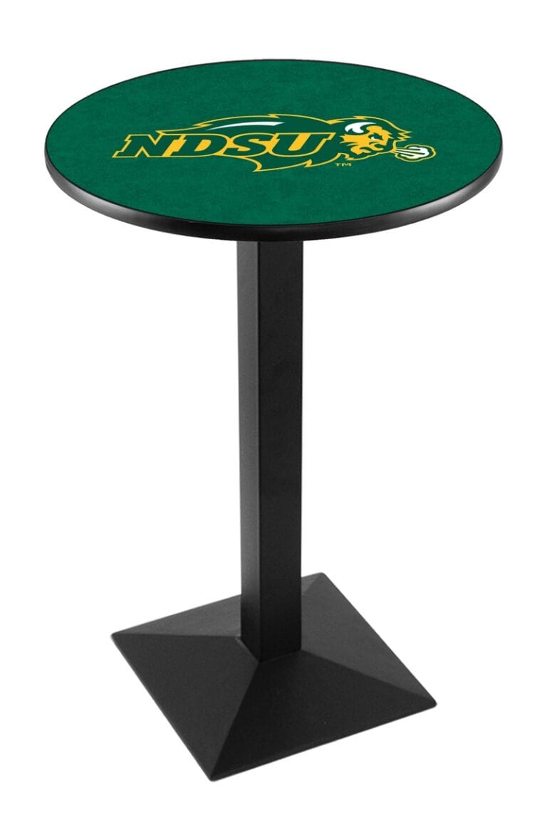 North Dakota State University 42-Inch Pub Table with 36-Inch Top, Square Base Base, and Chrome Finish (Green Top)