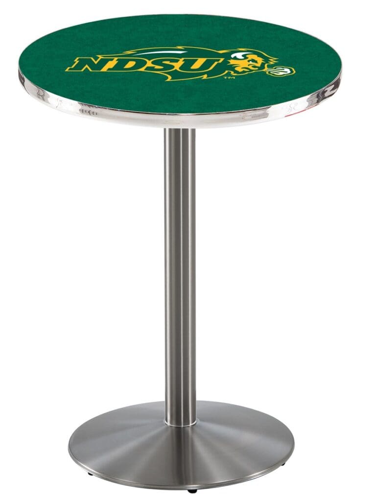 North Dakota State University 36-Inch Pub Table with 36-Inch Top, Square Base Base, and Chrome Finish (Green Top)