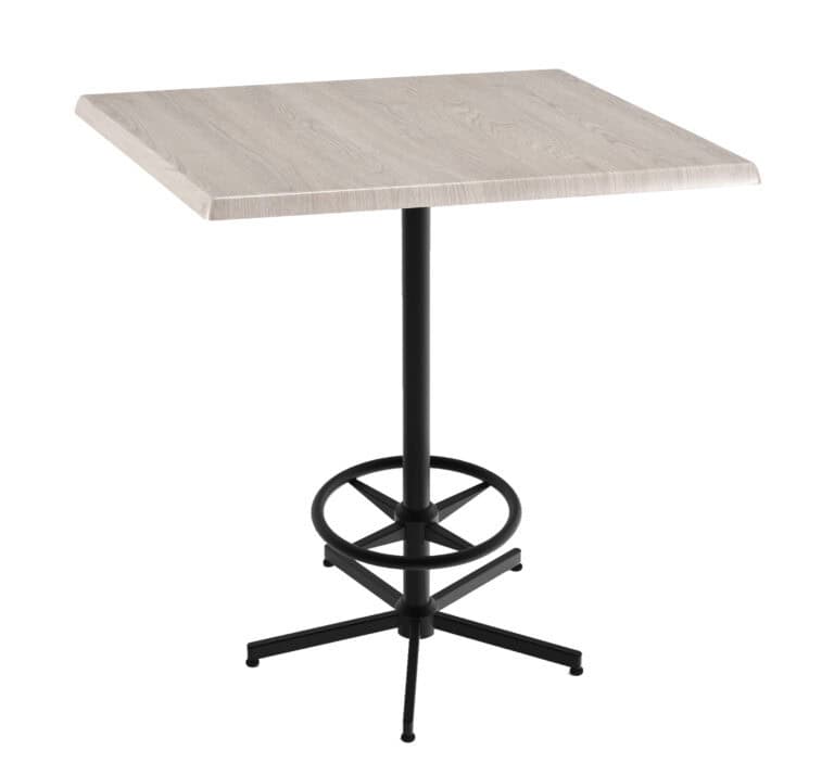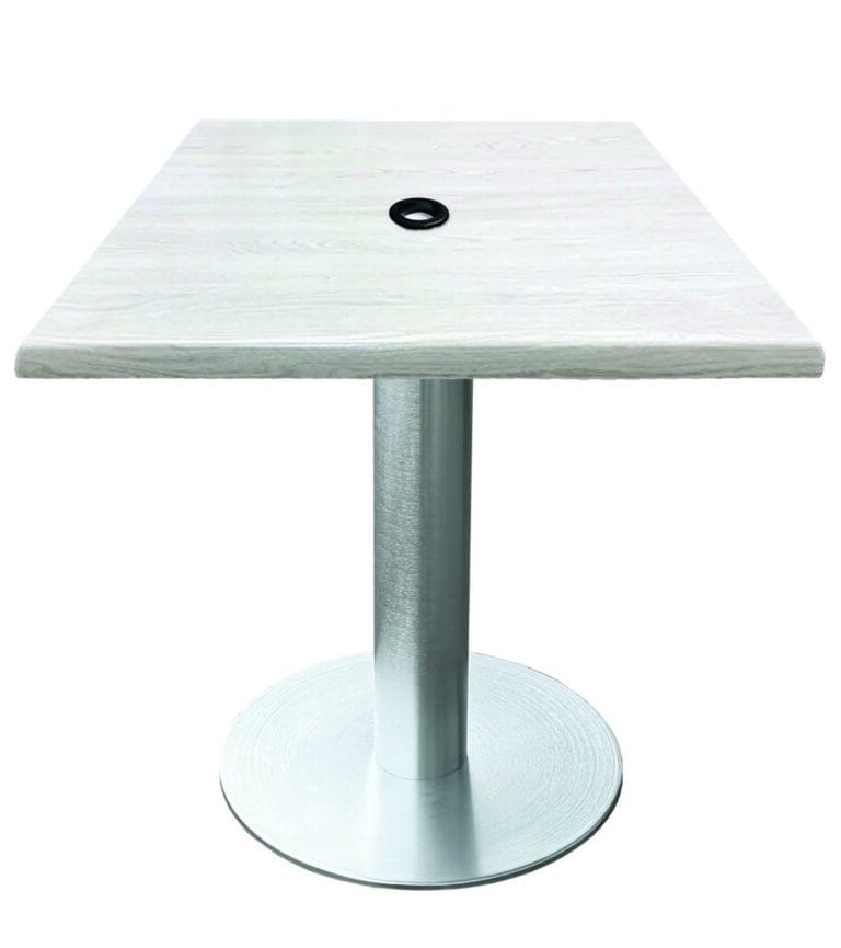 42-Inch Tall Indoor/Outdoor Table with 36-Inch Diameter White Ash Round Top with Umbrella Hole, Brushed Aluminum Base, and 18-Inch Diameter Foot