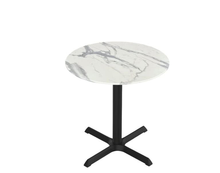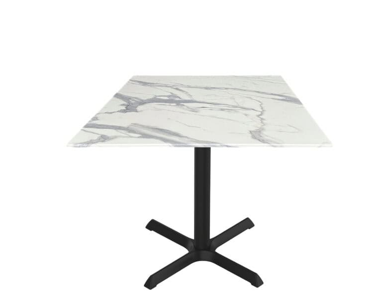 30-Inch Tall Indoor/Outdoor Table with 32 x 32-Inch Diameter White Marble Square Top with Umbrella Hole, Brushed Aluminum Base, and 18-Inch Diameter Foot